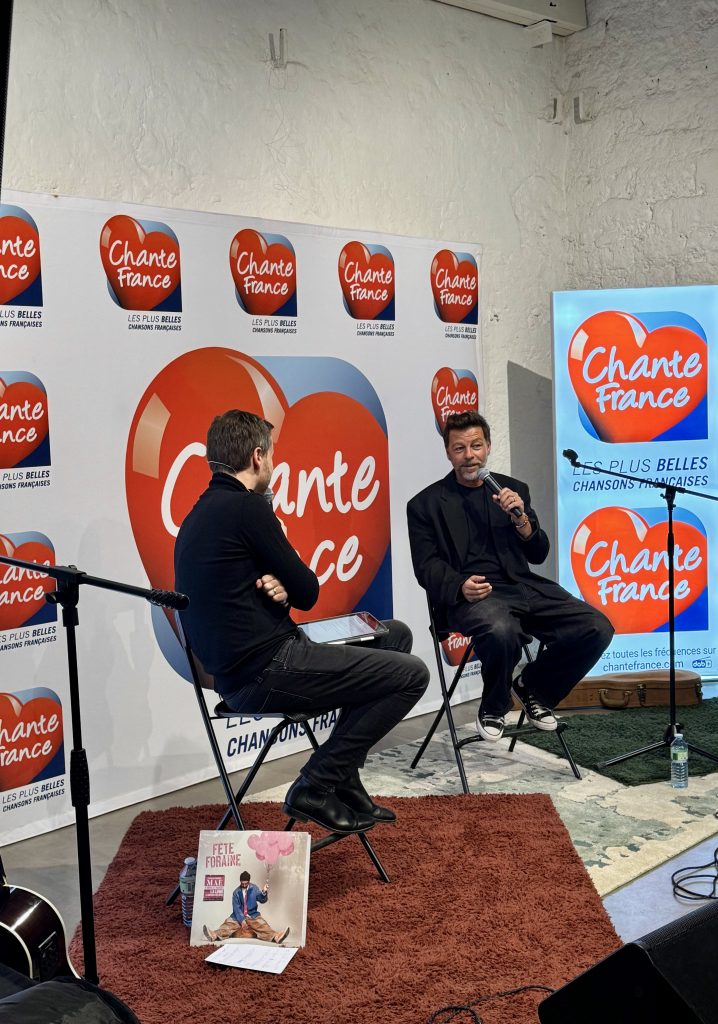 Quatre-vingts fans, ayant remporté leur place grâce à un jeu concours organisé par la radio, se sont rassemblés à l’Usine Deguerry pour vivre un moment unique et intimiste avec l’artiste. Au programme : interview privée en coulisses sans le public, puis une interview enregistrée pour Chante France et diffusée le jour de la sortie de l’album dévoilant les inspirations, le sens profond et les raisons créatives derrière « Fête Foraine », suivie d’un échange privilégié où certains fans ont pu poser leurs questions directement à Christophe Maé, et enfin quatre chansons interprétées en live acoustique dans une ambiance chaleureuse et festive au sein d’un cadre industriel contemporain.